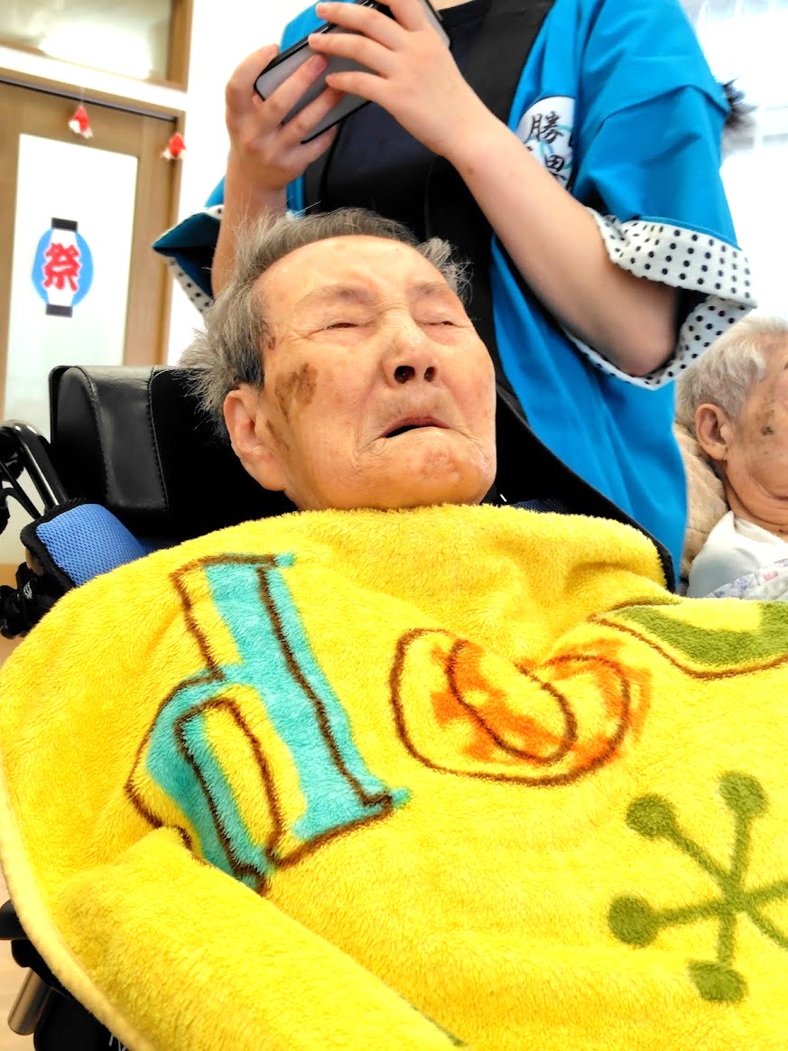 そして当日は夏祭りを楽しみにし、始まる前におめかしをされる入居者様もいらっしゃいました😁