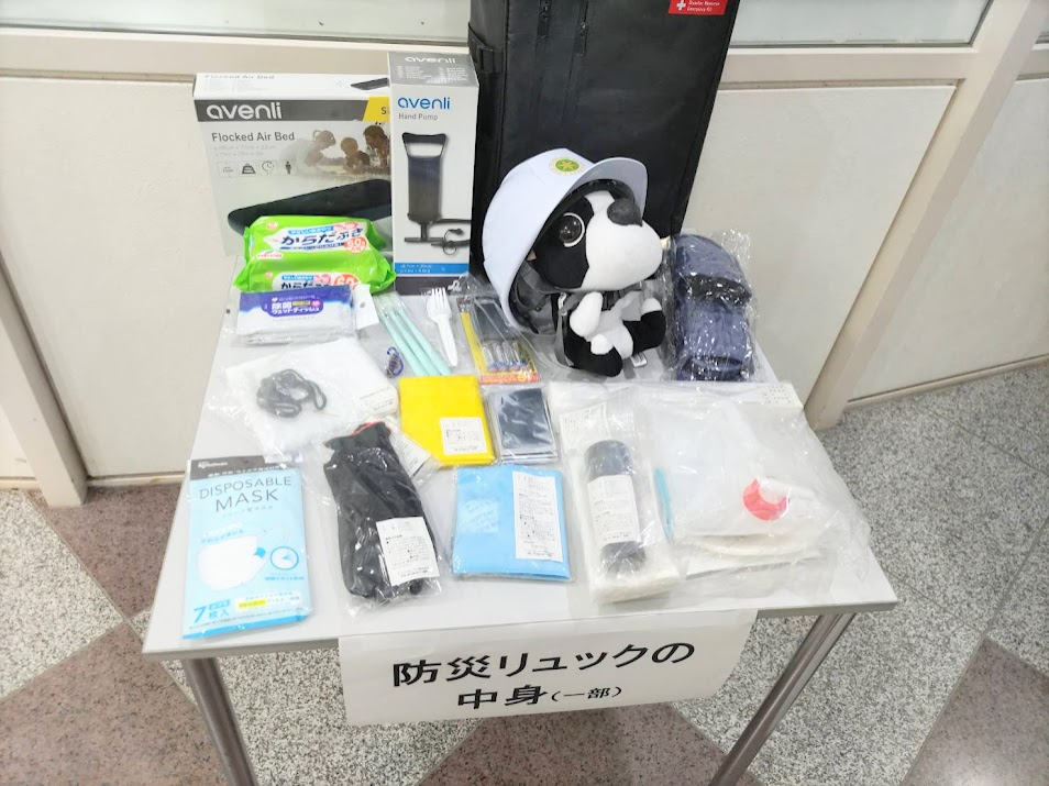 防災コーナーでは、防災の備えに関する展示がありました。日頃からの備えがあれば、災害時でも焦らず、冷静に行動できますね。