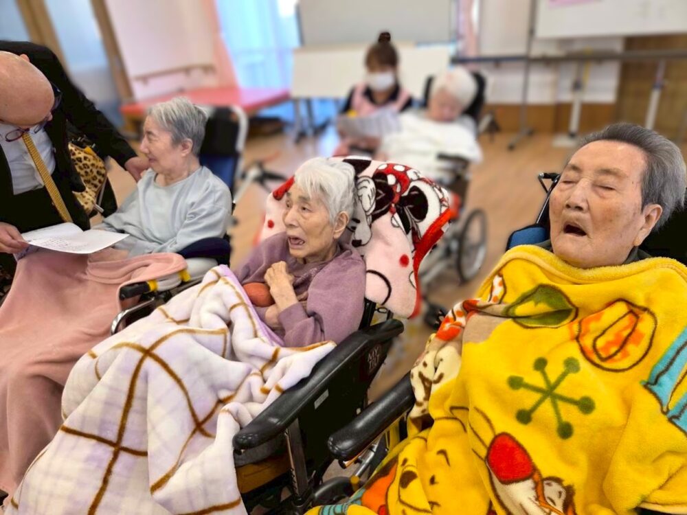 職員と一緒に歌を歌う方、懐かしの歌に思いを募らせ涙を流される方もいらっしゃいました😢