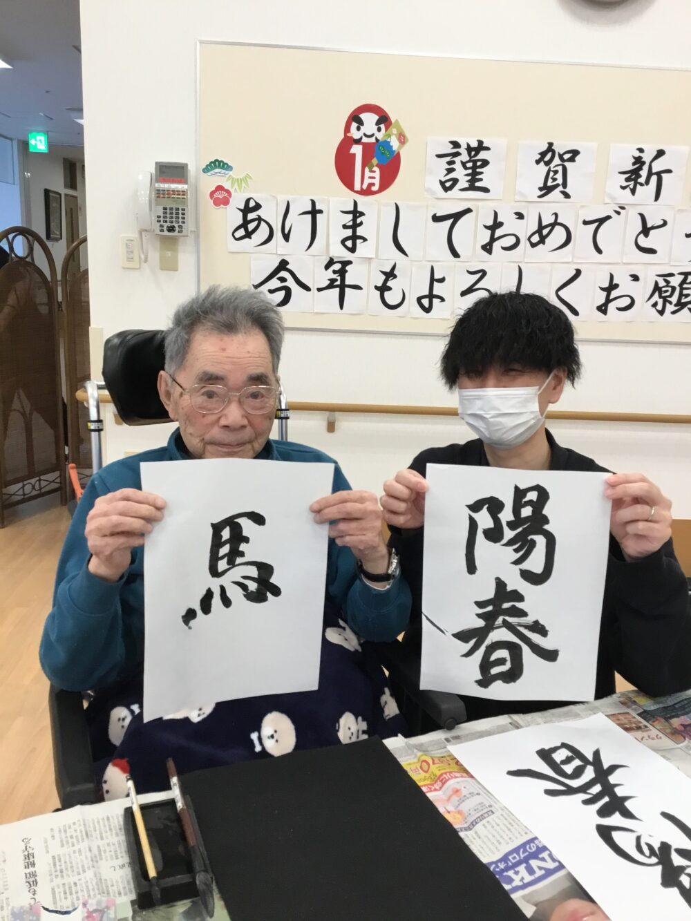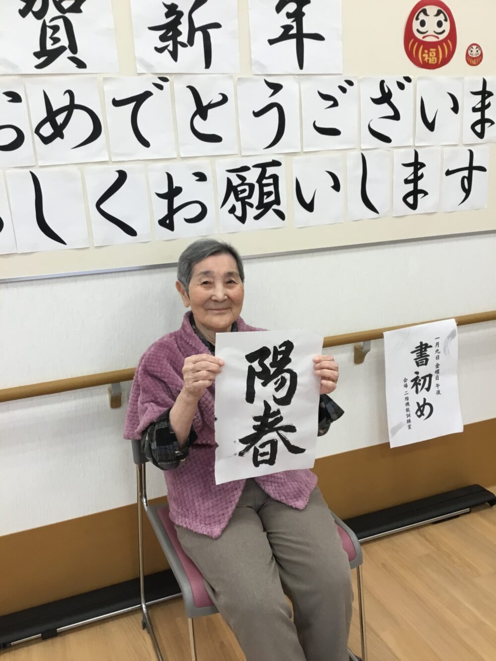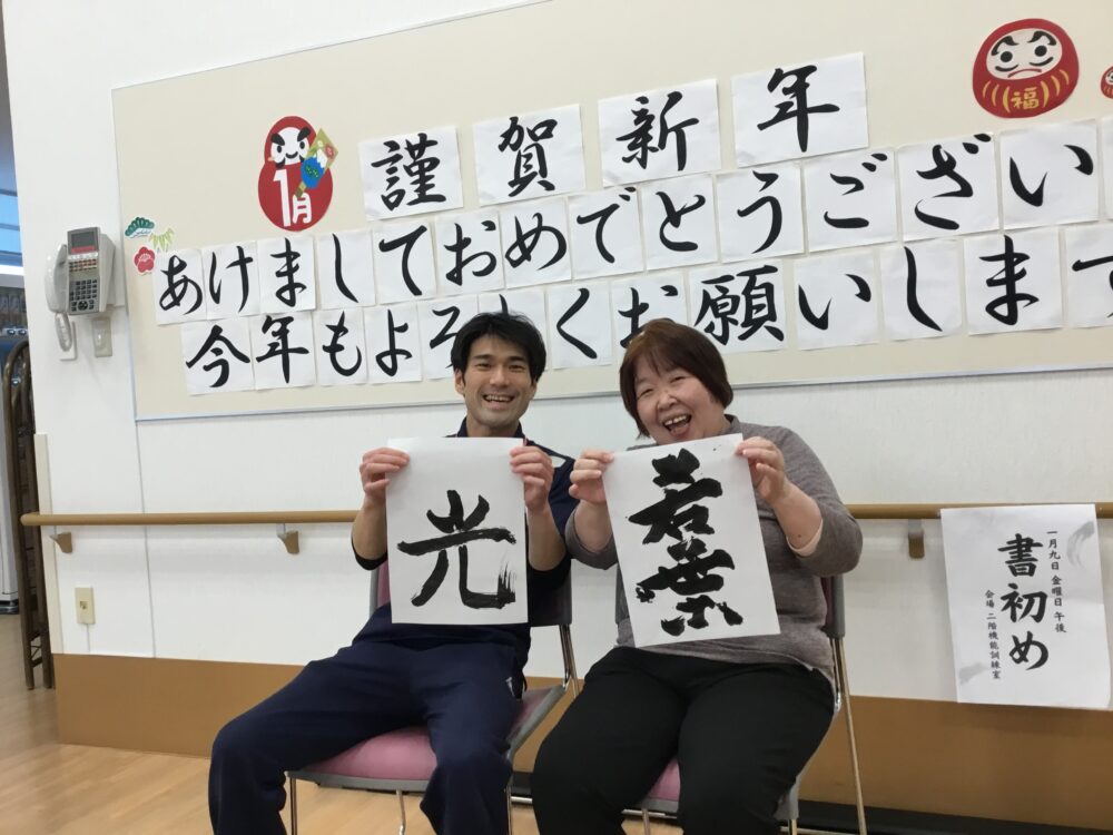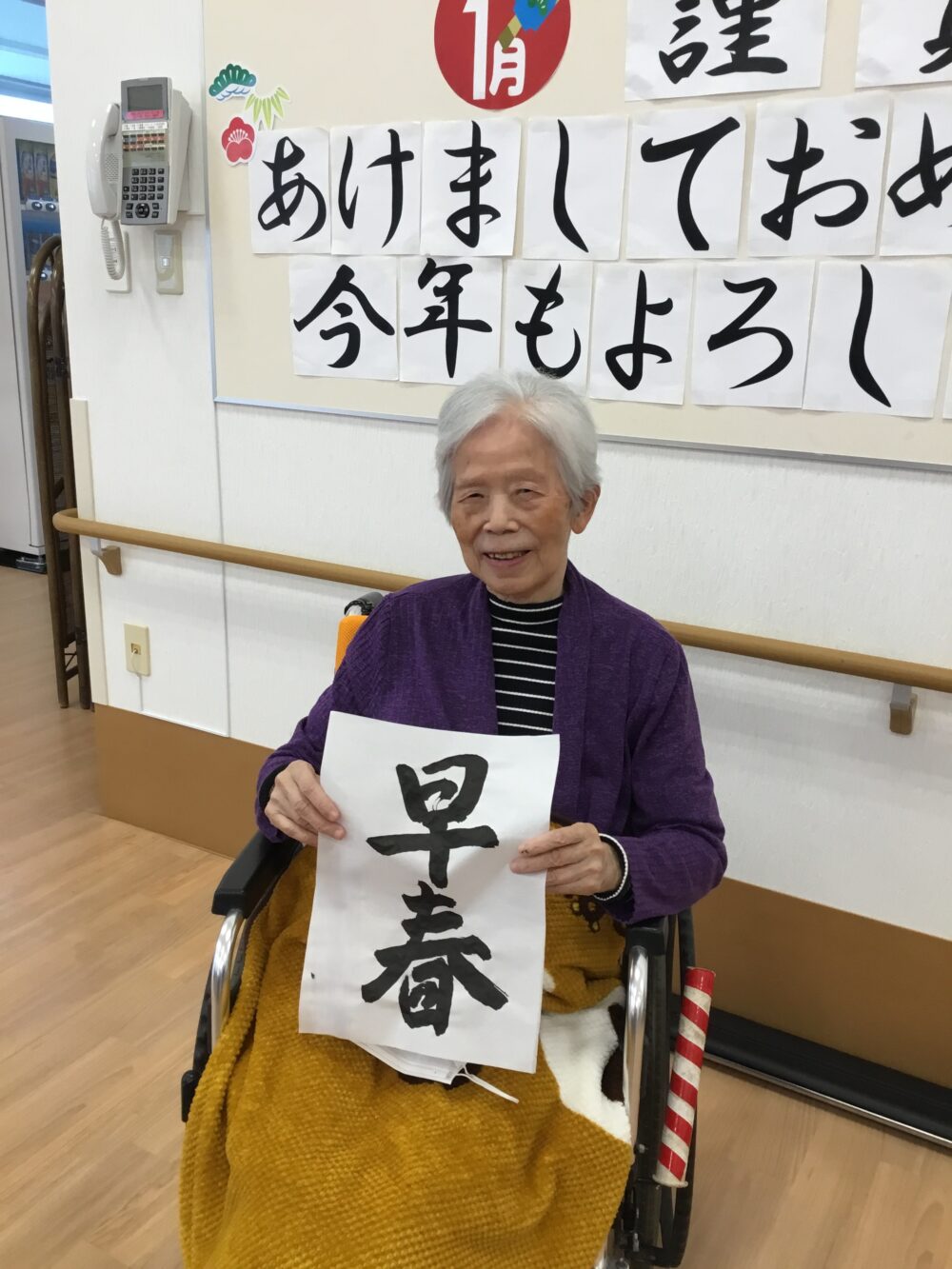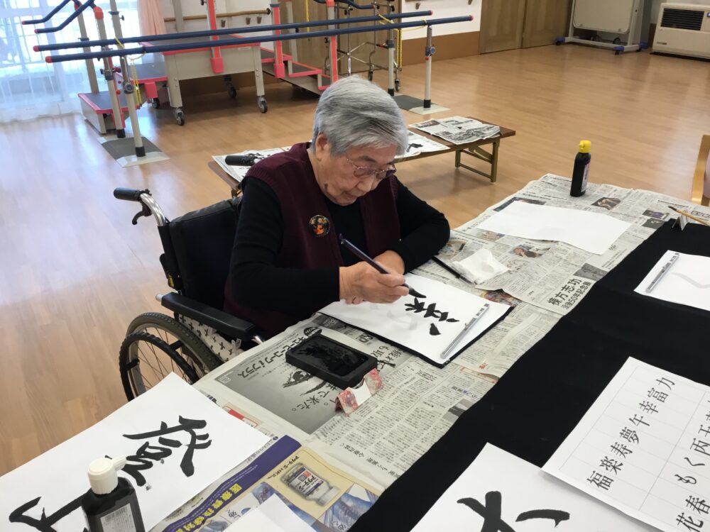 1月9日(金)2階ホール(機能訓練室)にて書き初めを行いました。