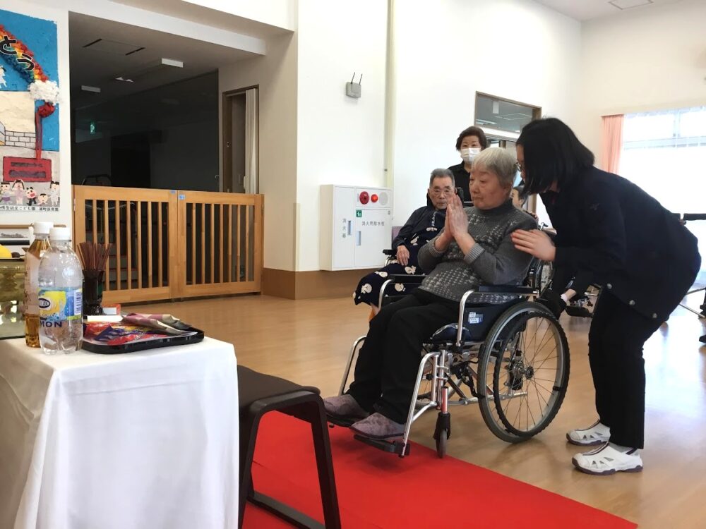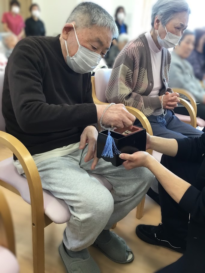 勝田三思園では、3月18日(木)に入居者の皆様とともに、春彼岸法要会を執り行いました。