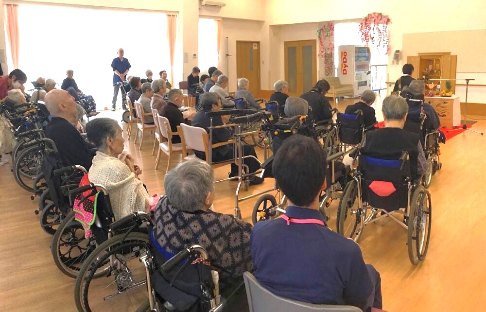 蓮心寺のご院主様にお越しいただき、入居者の皆様が静かに手を合わせ、ご先祖様や大切な方へ思いを寄せるひとときとなりました。
